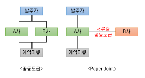 공동도급으로, 공사를 수주한 후 실질적으로 한 회사가 공사를 전체적으로 진행하고, 나머지 회사는 서류상으로만 참여