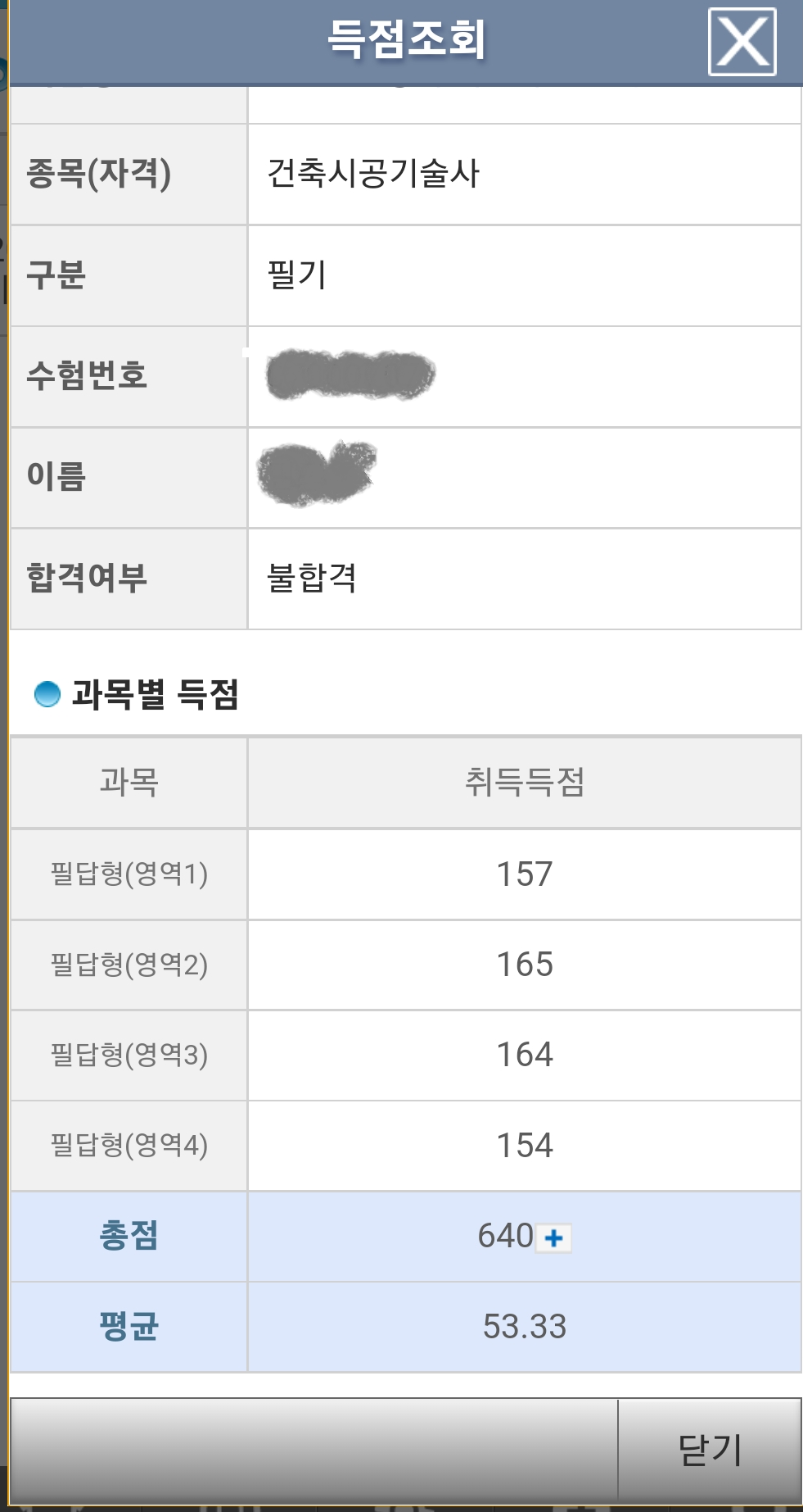 이렇게 맞았다 어느 한교시가 특출난것이 없고 합격선도 아니다.