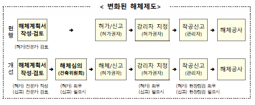 이후로는 감리자들의 교육 및 해체공법에 대한 임의 변경을 방지할 수 있는 계획서 미 관리시 벌점등을 제도적으로 구축해 나가는 것 같다.