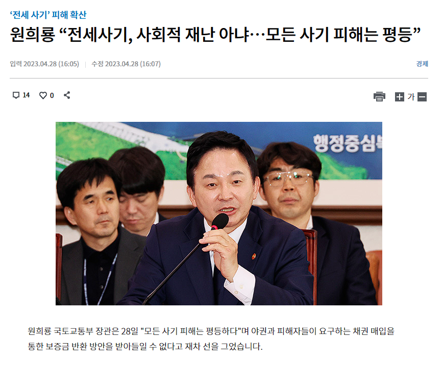 원희룡 “전세사기, 사회적 재난 아냐…모든 사기 피해는 평등” (kbs.co.kr)