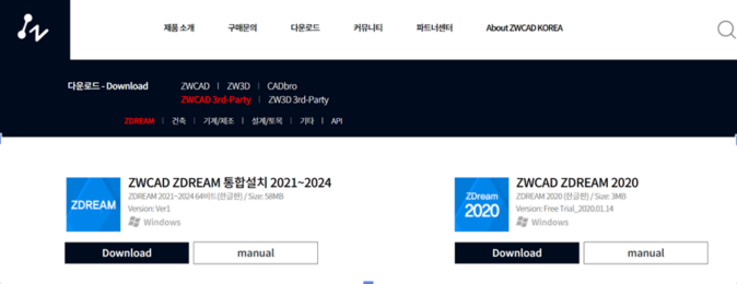 1) 실행파일을 받는다(ZWCAD KOREA (zwsoft.co.kr))